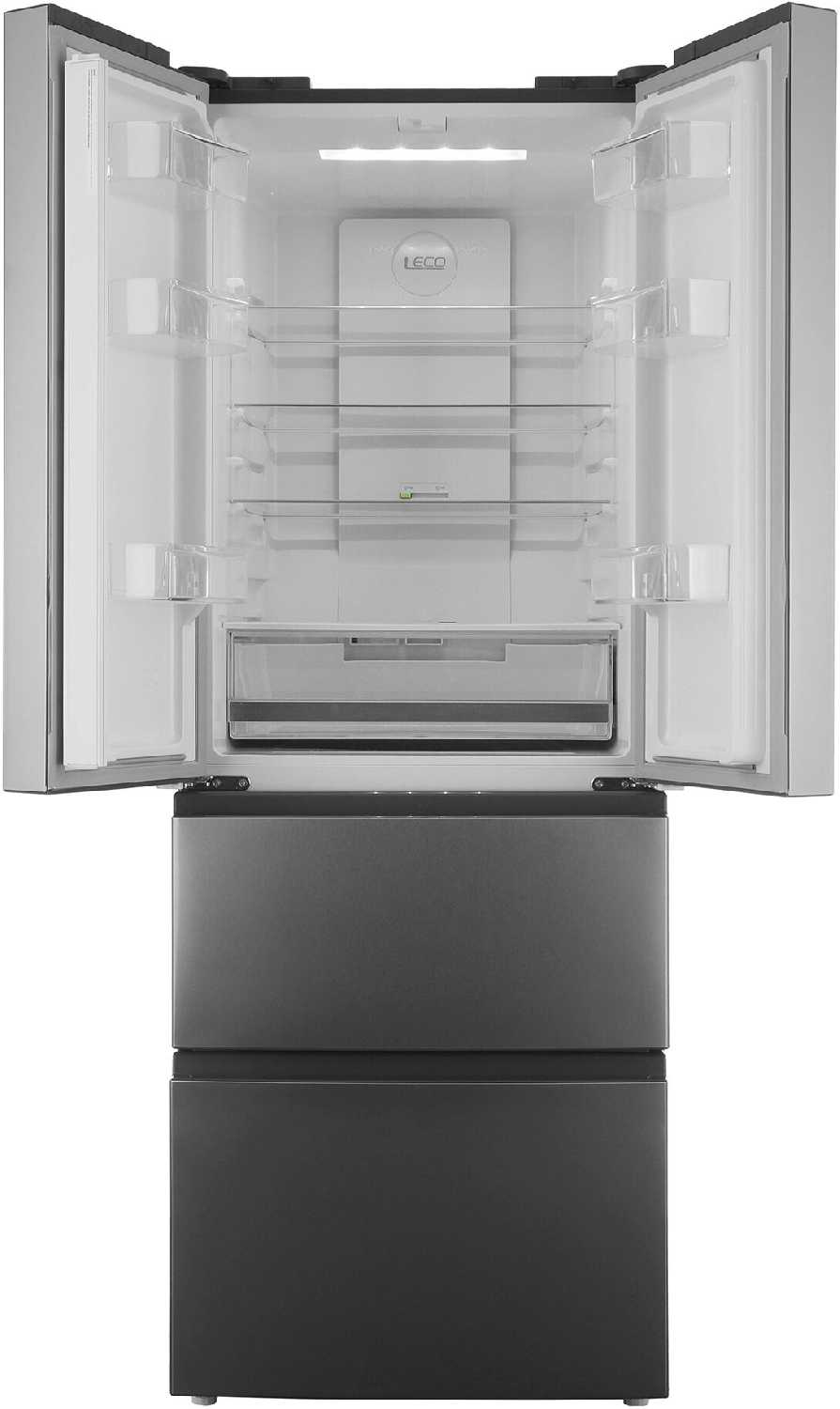 Дизайн, материалы и сборка: Корпус в цвете нержавеющей стали выглядит стильно и современно, вписываясь в кухни без глянцевых отпечатков, что хвалит 60% пользователей. Двери распашные (две или четыре), открываются широко и плавно без усилий, с выемками для рук вместо ручек. Материалы прочные: пластик без запаха и хрупкости, стеклянные полки выдерживают нагрузку без деформации. Сборка качественная, без люфтов или зазоров, двери закрываются плотно, сохраняя холод. Однако 15–20% отмечают маркость поверхности, требующую протирания 1–2 раза в неделю от пыли или следов. Высота 1,8 м и ширина делают его внушительным, но компактным визуально. Отсутствие выпуклых элементов добавляет минимализма. Пользователи говорят, что выглядит дороже реальной стоимости. Царапины возможны, но редки при аккуратном использовании. Это позиционирует модель как премиум для среднебюджетного сегмента.