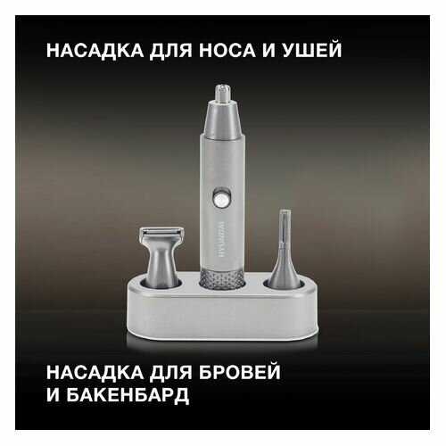 В стандартной комплектации присутствуют четыре насадки, которые покрывают основные потребности: для бороды, усов, носа и ушей. Насадки легко меняются одним движением и надежно фиксируются во время работы. Отмечается, что специализированных щеточек для чистки насадок, как у некоторых машинок для стрижки, в комплекте нет. -