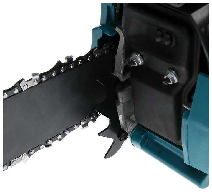- Штатная цепь с шагом 3/8" и толщиной звена 1.3 мм требует подтяжки каждые 40 минут работы из-за деформации хвостовиков.