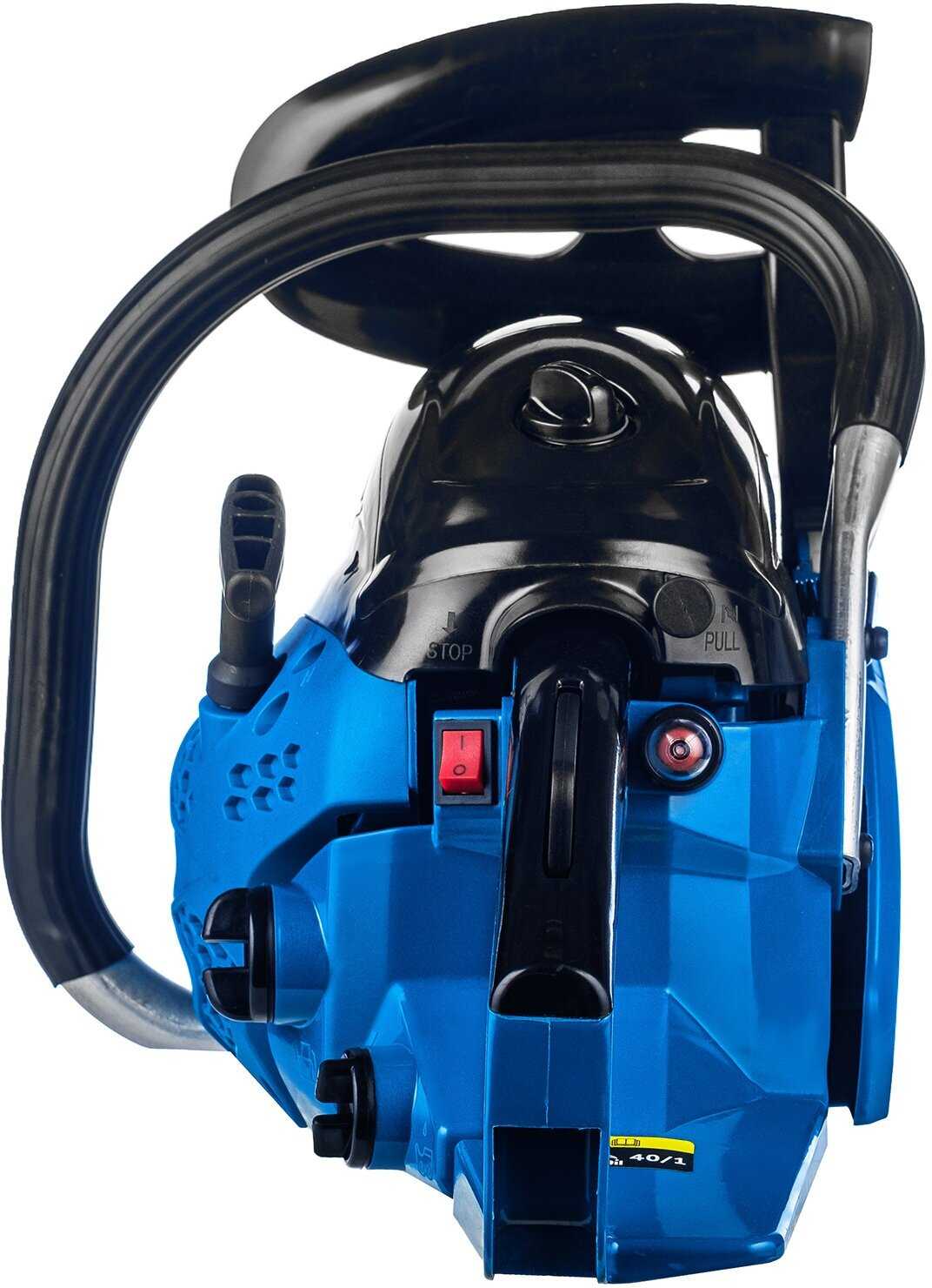 Пластиковые компоненты корпуса становятся главным слабым звеном: при нагреве деформируется узел сцепления, а на морозе материал становится хрупким. Встречаются случаи заводского брака – перевернутая установка тумблера стоп-пуск (требует положения "стоп" для запуска), согнутый винт натяжителя цепи и течи масла "со всех щелей". Возвратный механизм стартера выходит из строя в первые недели эксплуатации у некоторых пользователей. При этом комплектация признается богатой: защитные очки, мерная емкость для топливной смеси, напильник и отвертка для регулировки карбюратора добавляют ценности.
