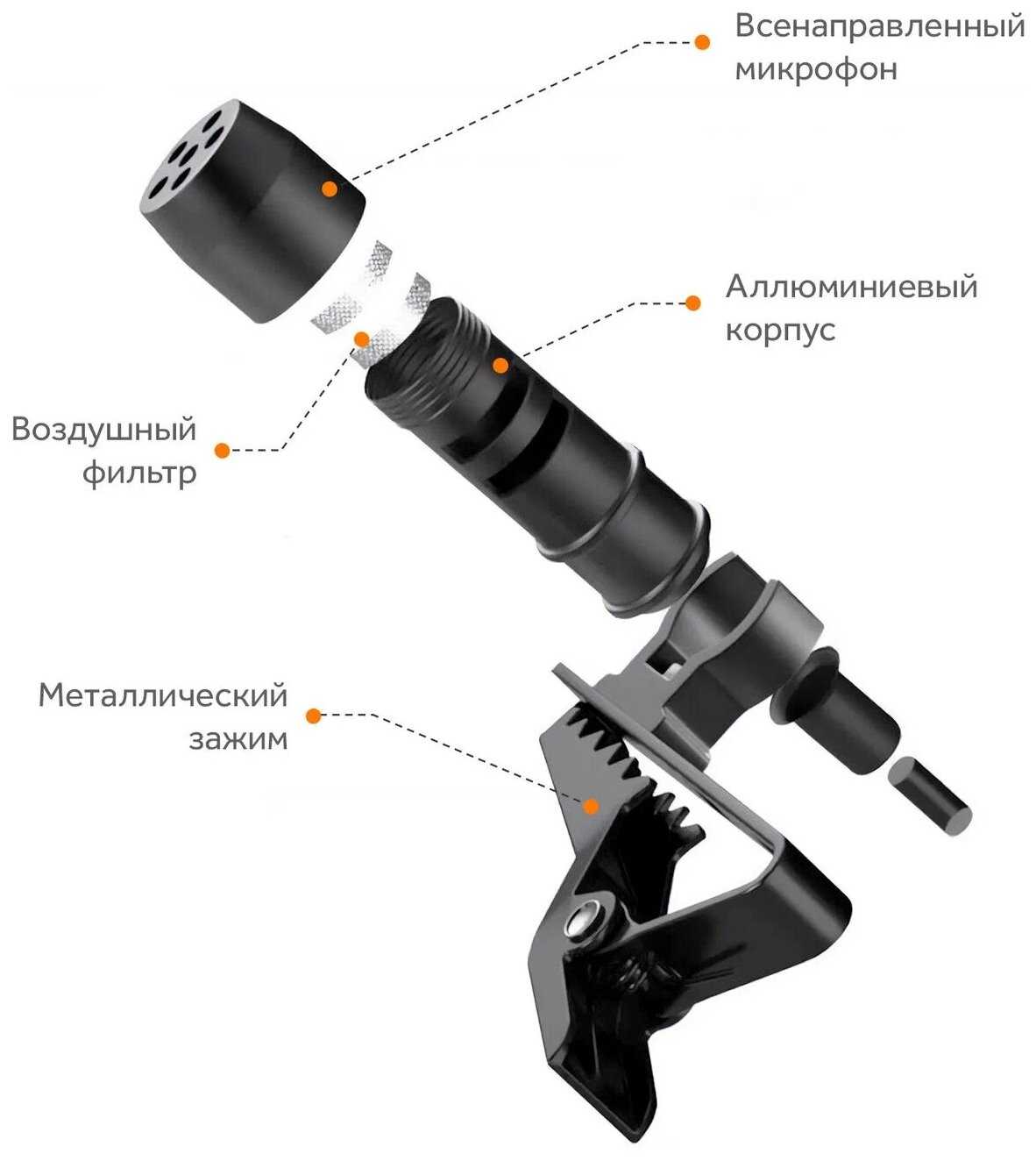 | Подробная комплектация : | микрофон, клипса-держатель, насадка для ветрозащитый |