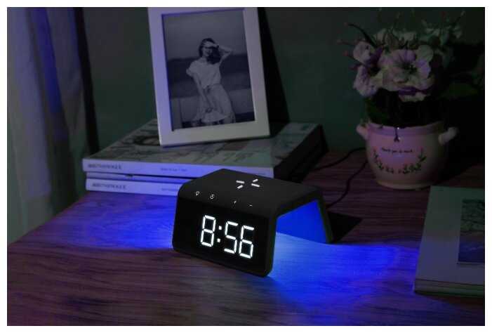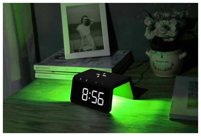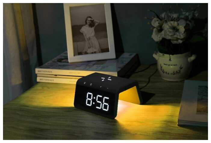 и быстро заряжает телефон. Крупный циферблат часов, есть возможность изменить яркость индикации, так что, мешать не будет. Есть питание от батарейки, на случай отключения от сети. Это удобно, не нужно заново устанавливать...