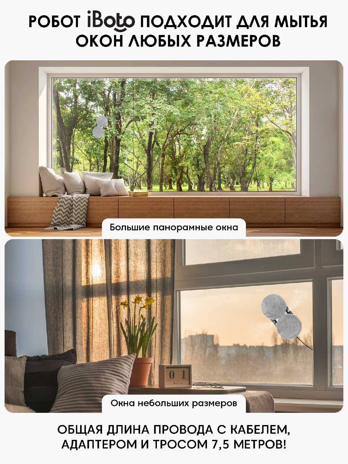 - Для работы требуется минимальный выступ рамы (5 мм), иначе робот не может закрепиться, что критично для современных панорамных окон.