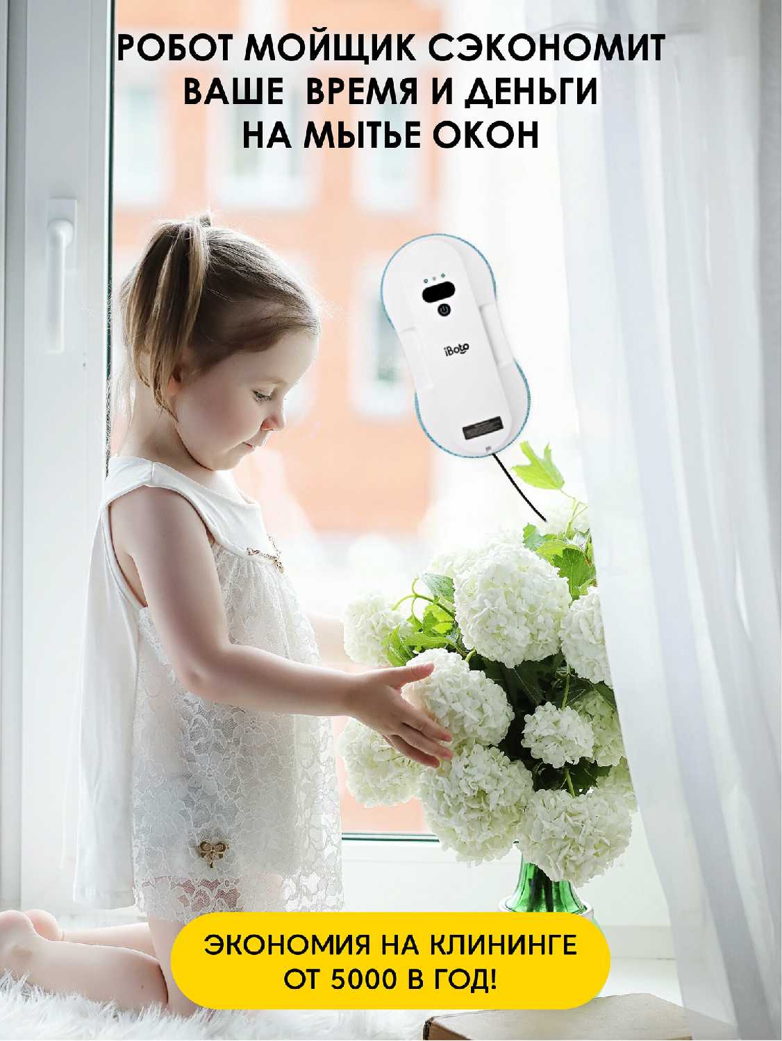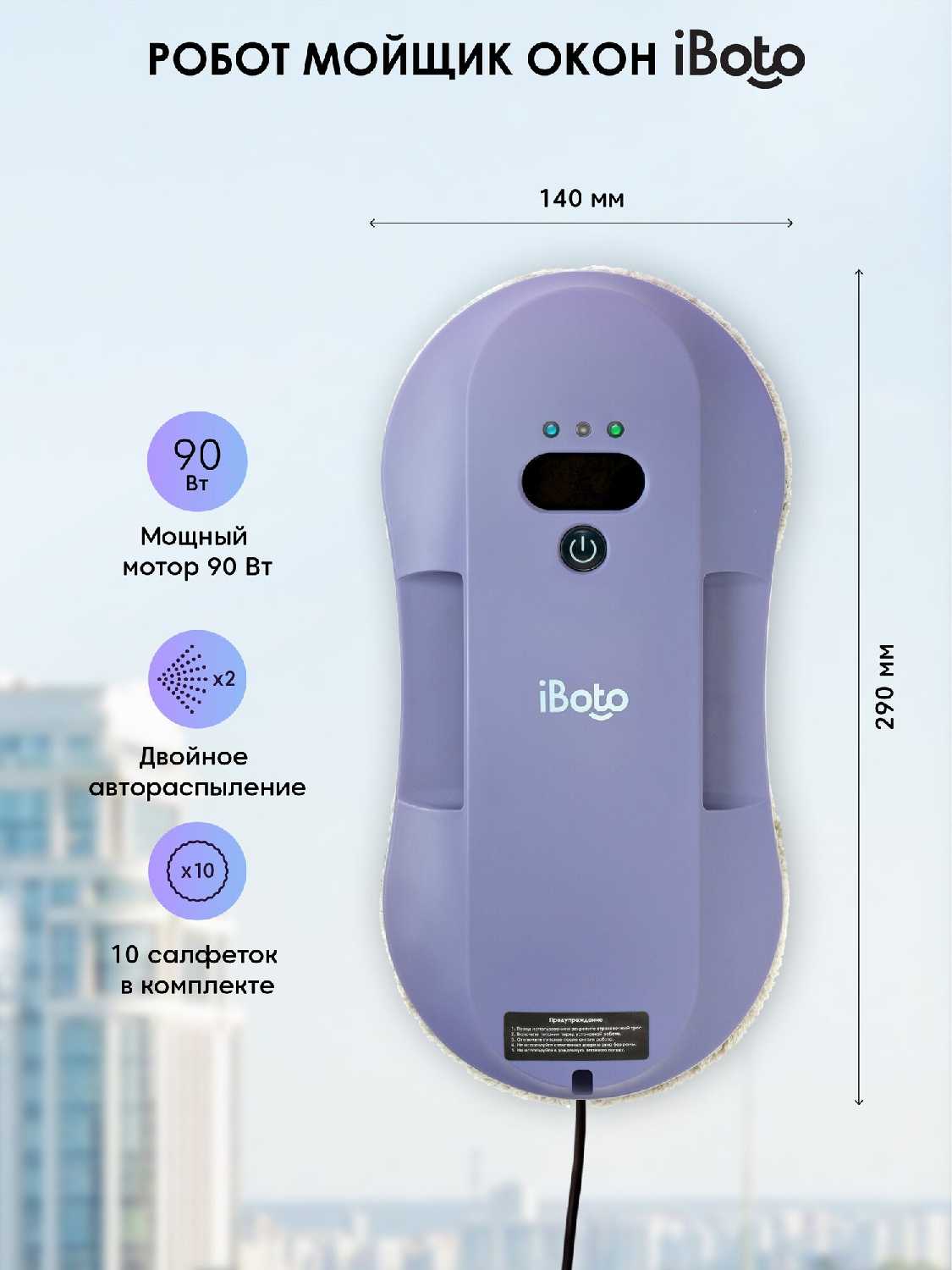 - Оснащен датчиками краев, что предотвращает падение даже на узких стеклах балконных створок.