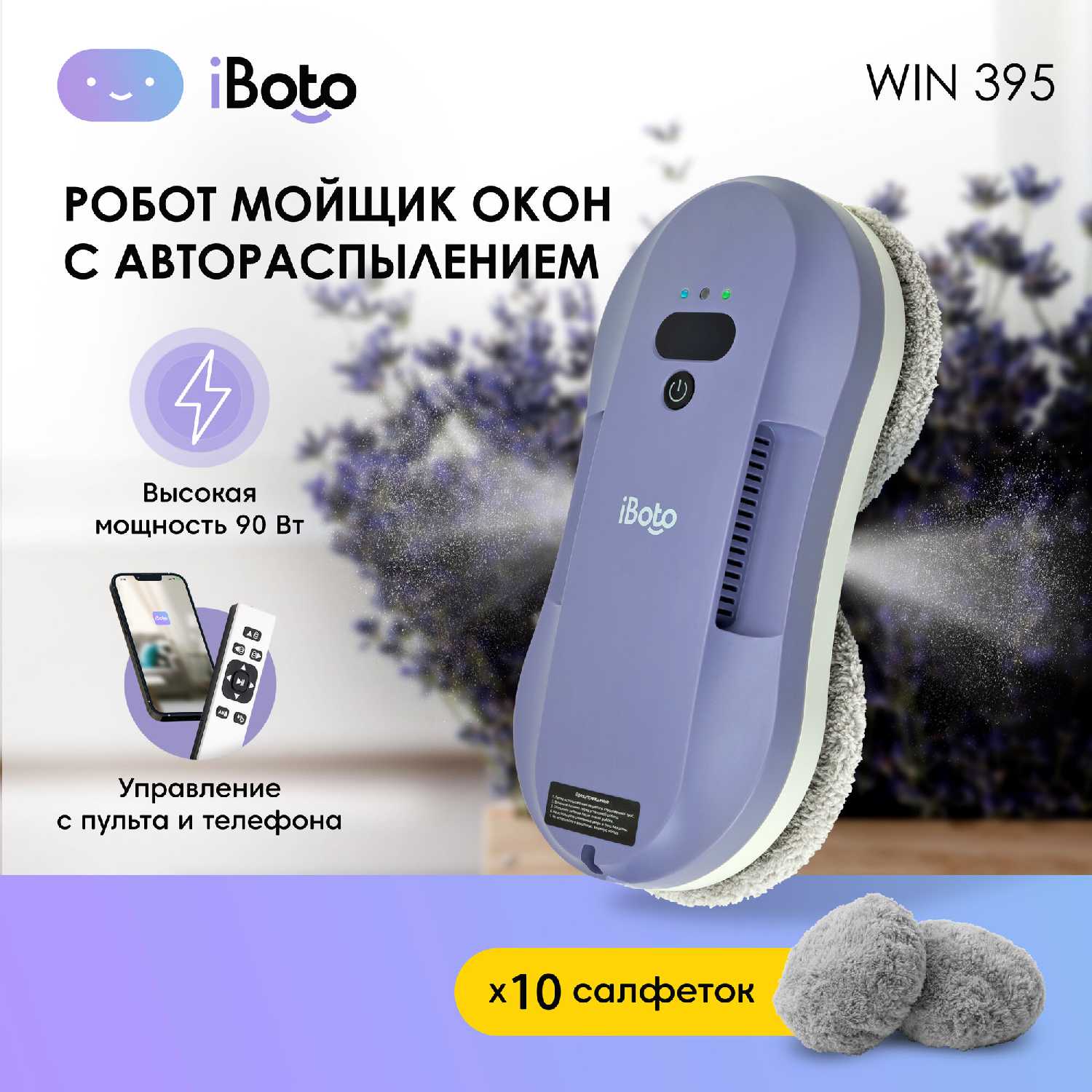 Сменные салфетки в комплекте. - - На узких окнах иногда может впасть в ступор, нужно нажать кнопку для продолжения движения.