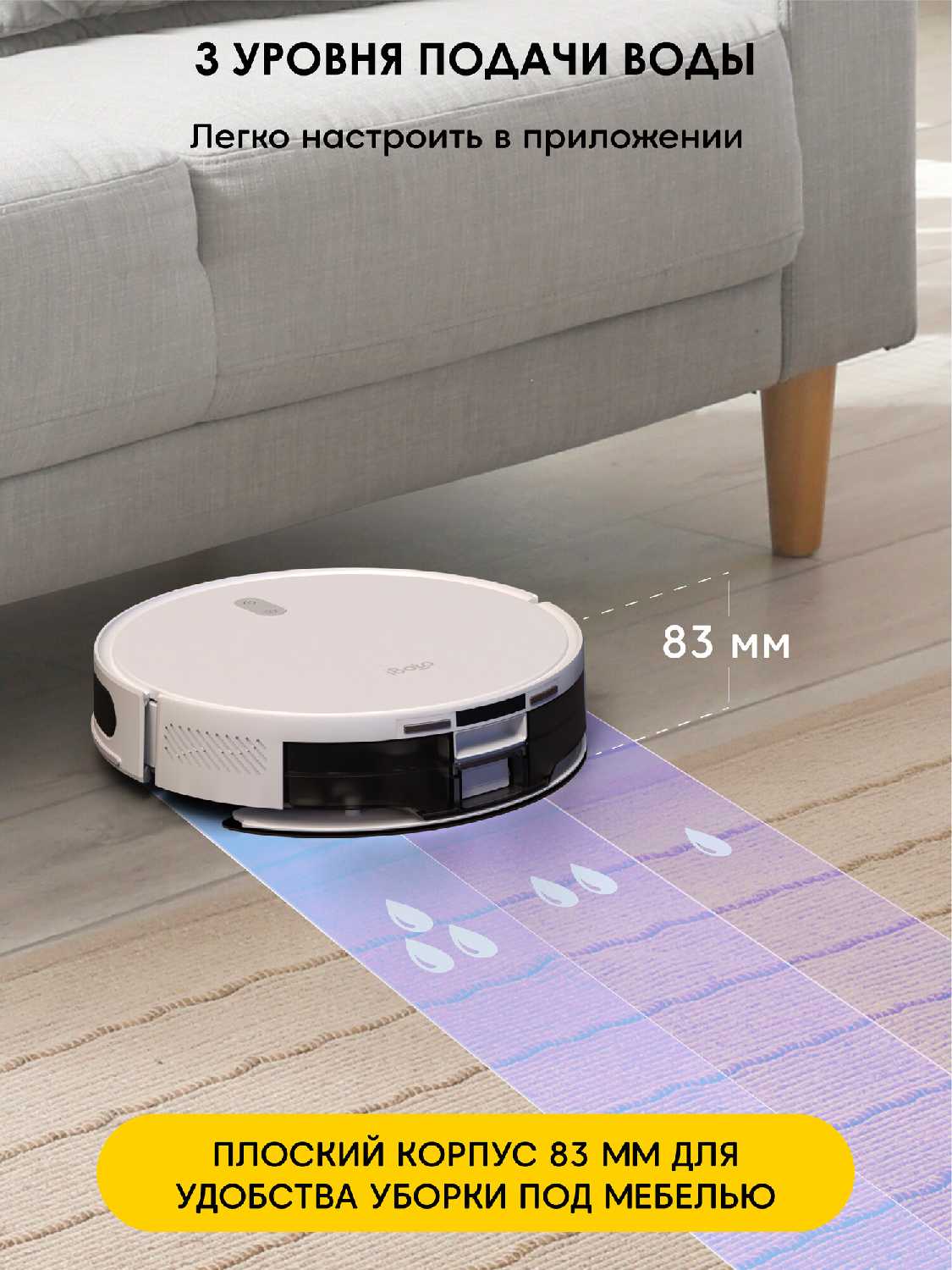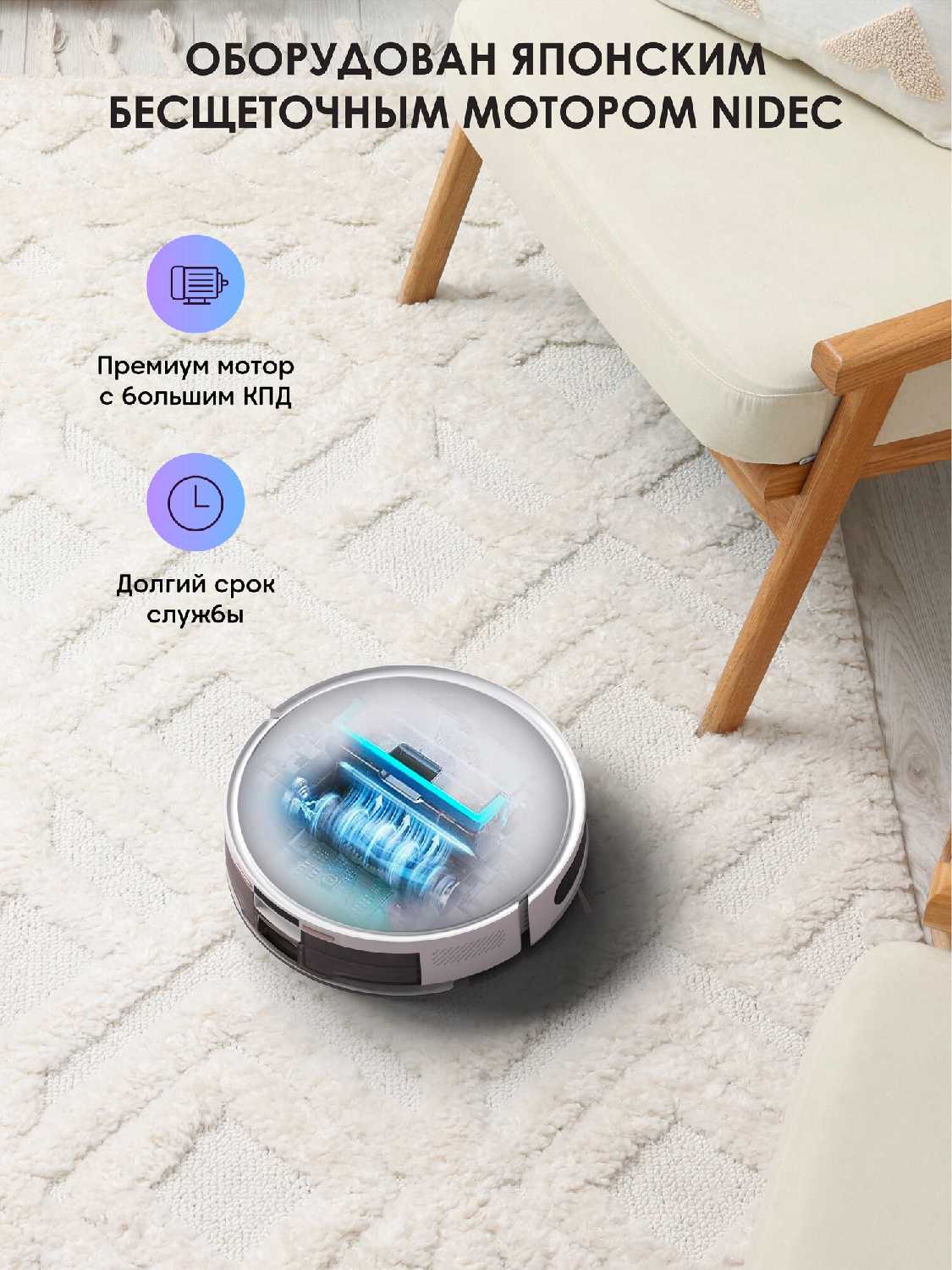 - + Строит карту квартиры,можно отправлять на уборку в определённое место.Компактный и вездепроходимый