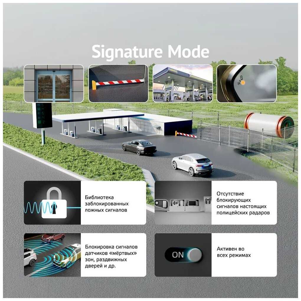 - Высокая чувствительность радар-детектора с поддержкой сигнатурного анализа: