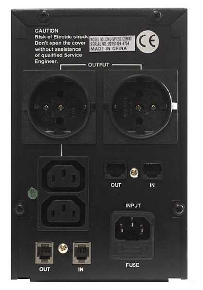 Характеристики:- 1-фазное входное напряжение выходная мощность 2000 ВА / 1800 Вт 5.4 мин работы при полной нагрузке 14.5 мин работы при половинной нагрузке выходных разъемов: 4 разъемов с питанием от батареи: 4 интерфейсы: USB