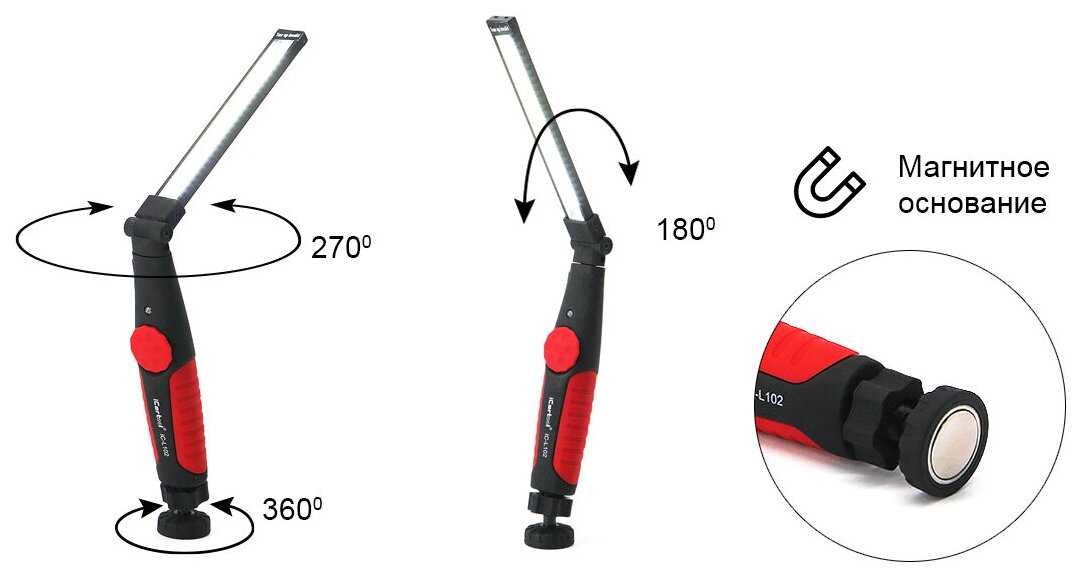 Особенности : | USB-зарядка, магнитное крепление, поворотная головка |