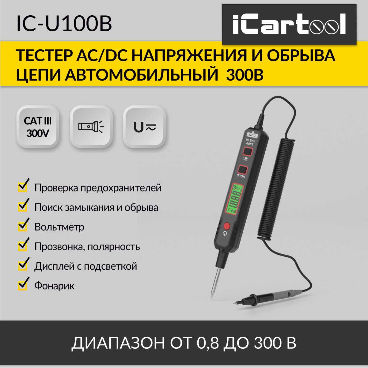Плюсы по отзывам пользователей - Почему стоит купить iCartool Тестер напряжения и обрыва цепи (IC-U100B)?*