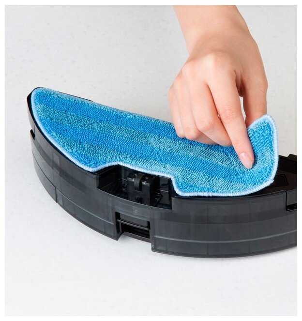 Робот может делать и влажную уборку, для этого есть специальный контейнер. Перед протиркой пола в него надо налить воду, после слить, если осталась. Можно настроить робот, чтобы он сразу протирал пол и всасывал пыль, для этого в контейнере для влажной уборки есть небольшой мусоросборник. А можно на это время отключить всасывание.