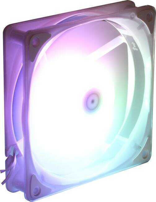 - + Качественный вентилятор для выдува на корпус с отличным дизайном и подсветкой ARGB, которая на белом фоне более естественно воспринимается.
