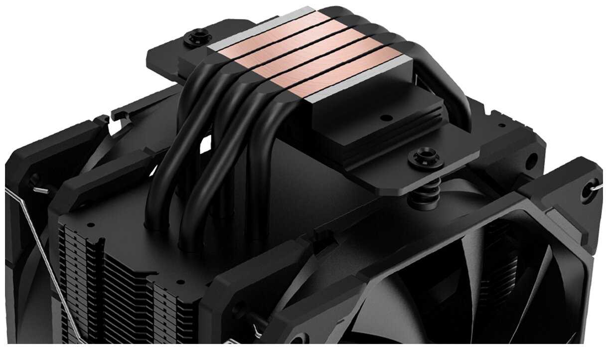 - Пять тепловых трубок с прямым контактом обеспечивают заявленный TDP 220 Вт, подходящий для процессоров до 150-180 Вт в реальных сценариях.