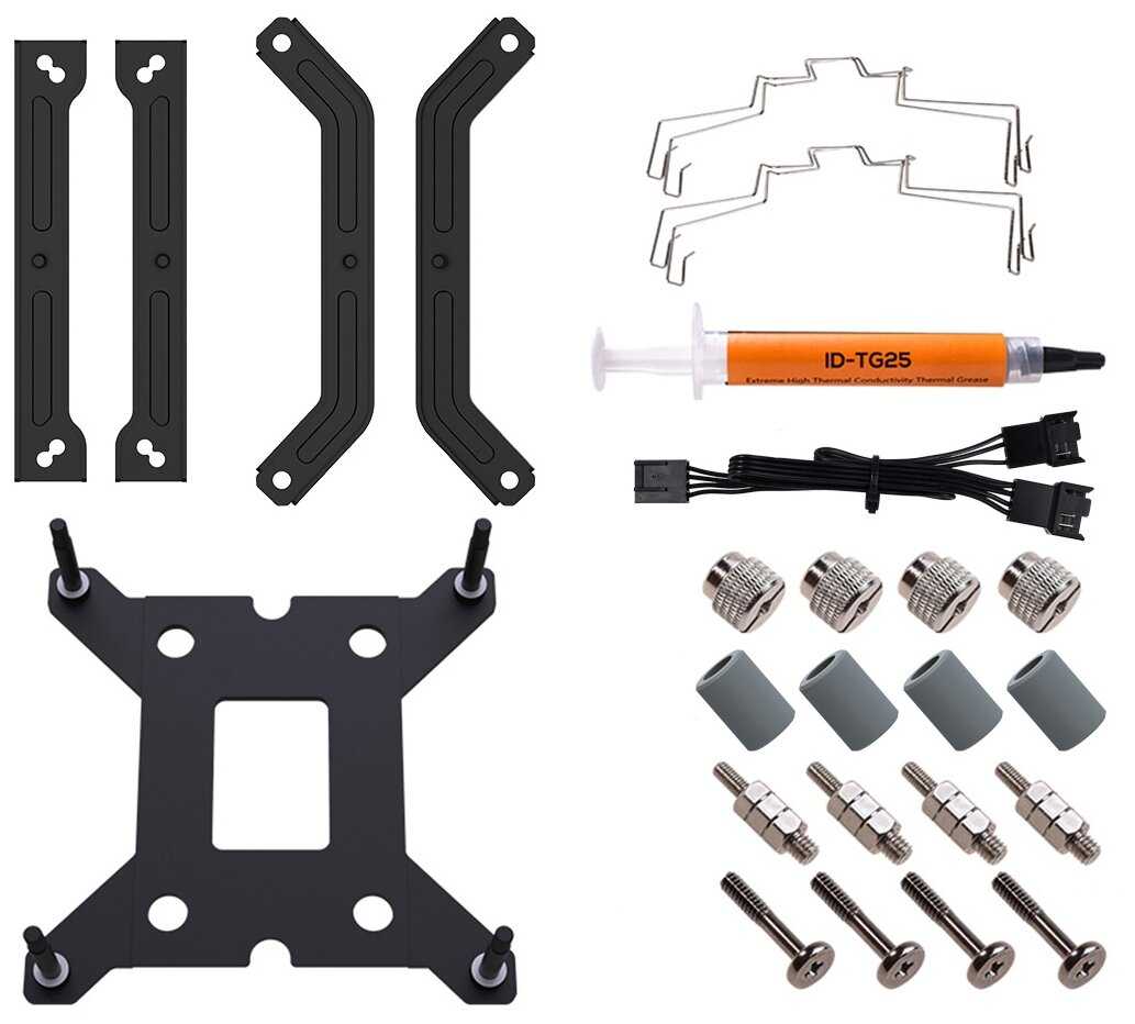 - В комплекте термопаста (ID TG-25), переходник 2-to-1 для подключения вентиляторов к одному CPU_FAN, резиновые прокладки для снижения вибраций.
