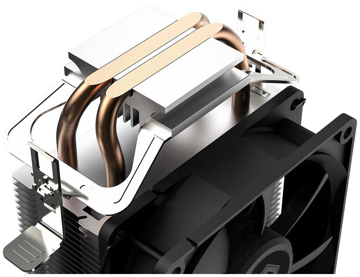 - Медные тепловые трубки (2-4 шт.) обеспечивают хороший контакт с процессором.