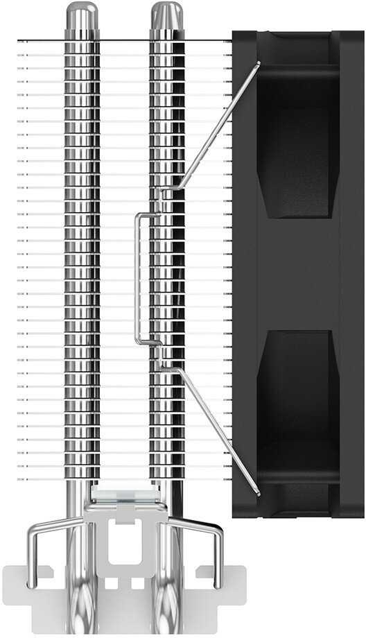 Эффективность охлаждения и производительность Кулер демонстрирует стабильную работу с процессорами TDP до 65-80 Вт: Ryzen 5 3600/4600G, i3-10100F и Xeon E3-1270v3 не превышают 60-75°C в нагрузке. Однако для горячих чипов вроде Ryzen 5 5600X (83°C под нагрузкой) или i5-11400F мощности недостаточно. Две медные теплотрубки напрямую контактируют с процессором, что улучшает теплосъем, но алюминиевый радиатор ограничивает рассеивание до 100 Вт. В стресс-тестах с Ryzen 5 5500 температура удерживается на 65°C, что подтверждает пригодность для средне-бюджетных CPU.