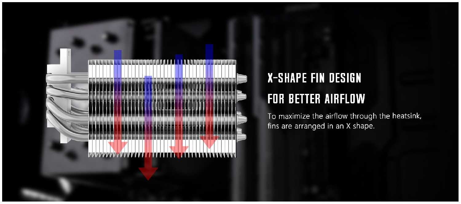 -Трубки с радиатором сдвинуты от центра, что дает свободное место для, например, оперативки