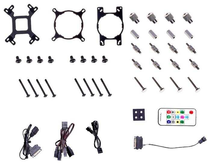 250Вт TDP, универсальные крепления для разных сокетов, RGB подсветка с синхронизацией различными платами, пульт управления подсветкой (если не управляется материнкой)