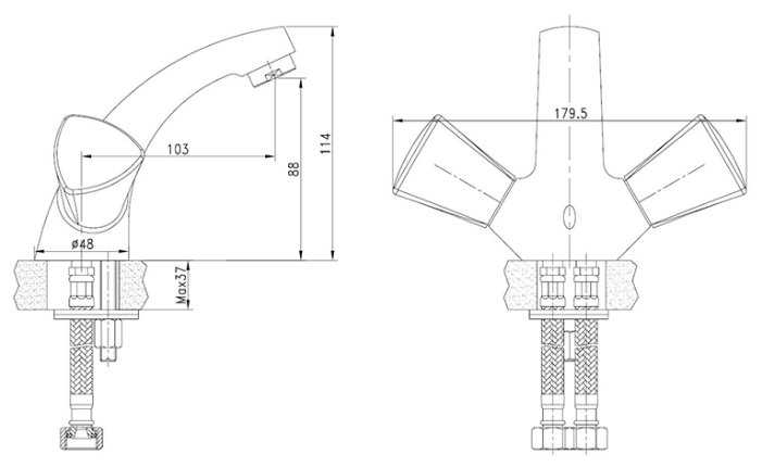 - + Цена. Самый дешевый из некитайских смесителей с двумя ручками (только такой можно использовать при газовой колонке).