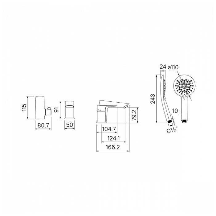 | Комплектация : | держатель лейки, дивертор, излив для набора воды, лейка, ручной душ, смеситель, шланг |