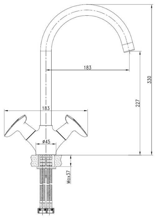 Очень подходит для нашей мойки 48*48. Изгиб хороший, вода попадает в середину раковины, а не бьёт в край (как у нас раньше было с другим краном). Высокий, удобно мыть кастрюли.