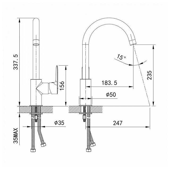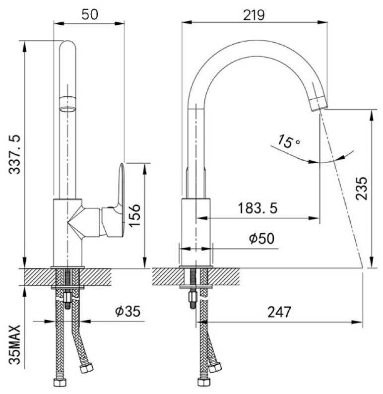 - + Отличный смеситель. Удобный высокий излив, внутри аэратор, легко поворачивается в нужную сторону.