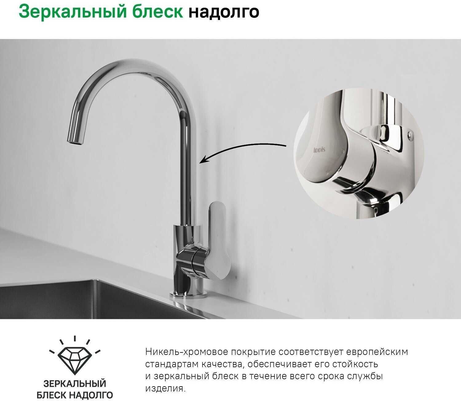 Подходит для глубоких моек, как у нас. Такой удобный рычаг для включения воды. Двигается плавно, можно легко настроить воду нужной температуры. Искали смеситель именно с высоким, поворотным изливом и аэратором, что бы было меньше брызг. Удивило, что такой красивый смеситель произведен именно у нас в России. Еще и гарантию к нему дают 5 лет, что очень радует, значит производитель уверен в том, что сделал качественный смеситель. Сам смеситель сделан из латуни, как и положено хорошему смесителю.