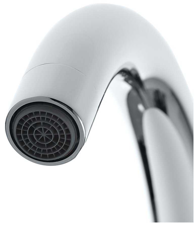 Кран поворачивается на 360°, так что ручка смесителя может быть и справа, и слева.