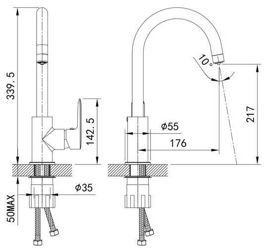 - - подводка в комплекте очень короткая, если трубы не возле смесителя, можно особо на них не рассчитывать