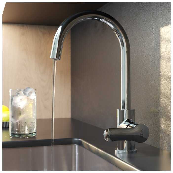 Год назад мы приобрели такой смеситель для кухни, очень качественный, внешне приятный и аккуратный. Для регулирования водопроводной воды и подачи фильтрованной, у него имеется только один рычаг с керамическим картриджем и отдельно встроенные каналы. Форма ручки удобная, мягко и плавно отклоняется и движется в любую сторону. Смеситель довольно габаритный, прекрасно подходит для высокой большой раковины. При должном уходе за таким смесителем, он будет излучать приятное сияние, не подвергаться коррозии долгое время.
