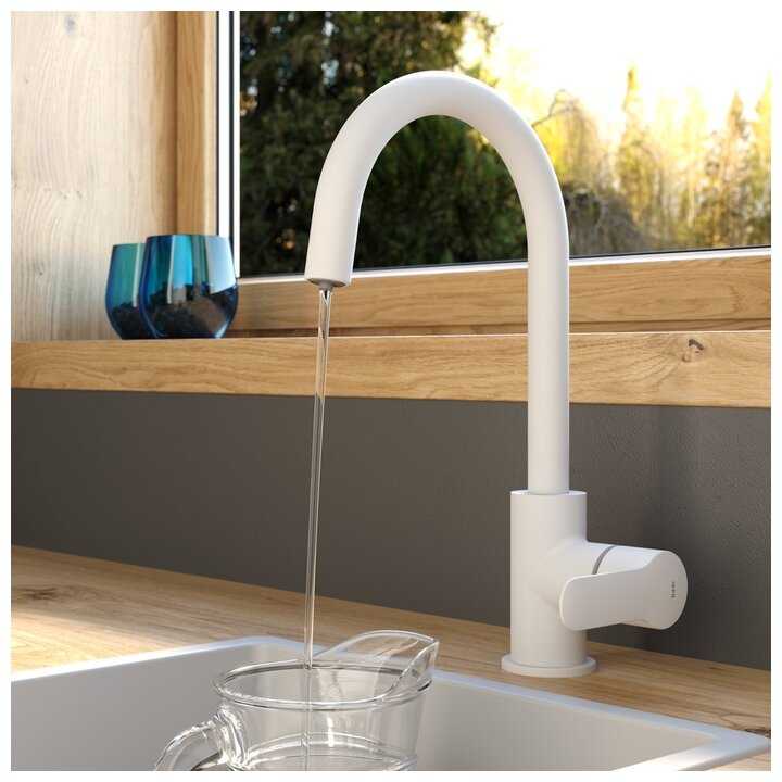 Приглянулся мне кухонный смеситель в белой расцветке, дизайн у него простой и универсальный, самое то! Купил его и установил несколько недель назад. Меня пока все устраивает, смеситель работает как положено и не подводит нас в эксплуатации. Смеситель выглядит качественным и надежным, у меня нет сомнений в его долгой службе. Шумность у смесителя довольно низкая, что тоже очень радует меня. Ним комфортно пользоваться, рычаг легко поднимается и опускается, поворачивается. О своей покупке я нисколько не пожалели, шикарный смеситель.