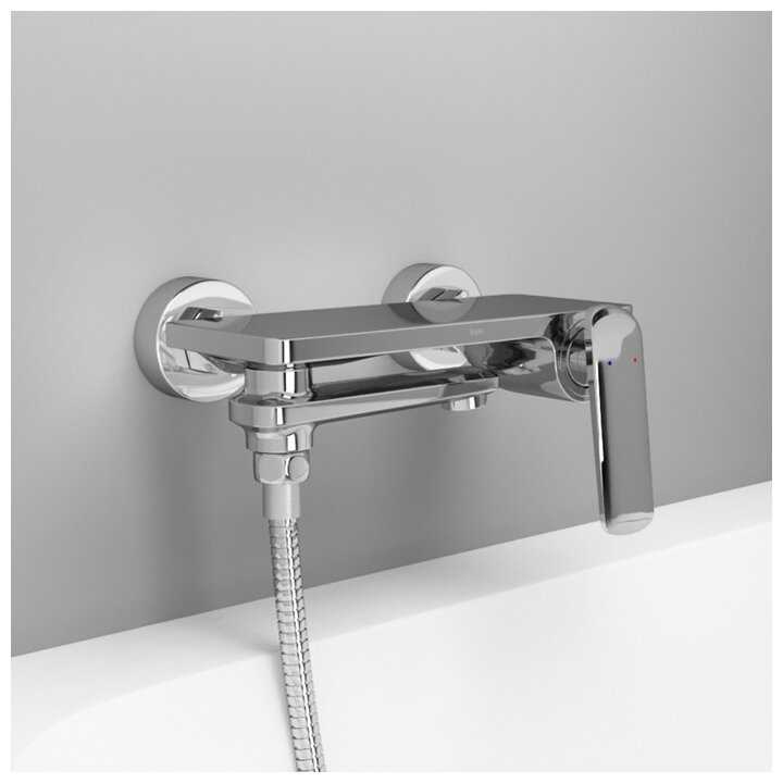 У этого смесителя монолитный корпус и четкие прямые линии. Оригинальное конструкторское решение и верхняя часть смесителя представляет собой удобную полочку, на которой можно разместить гель для душа или шампунь, или иные средства ухода. Излив и кран находятся на некотором отдалении друг от друга и это дает больше маевренности при использовании поворотным рычагом для регулировки воды.