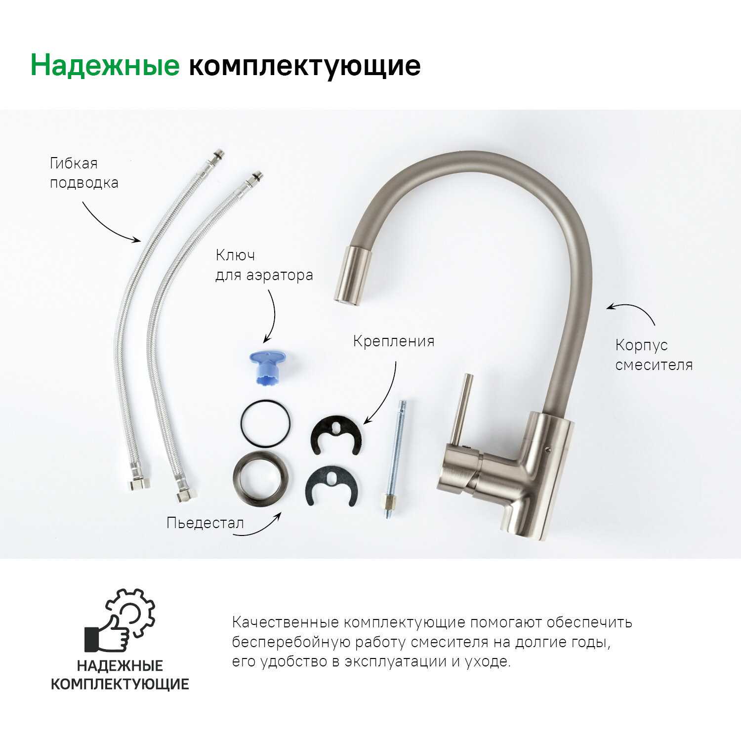 - + Гибкий излив, самое главное. Качество комплектующих и сборки.