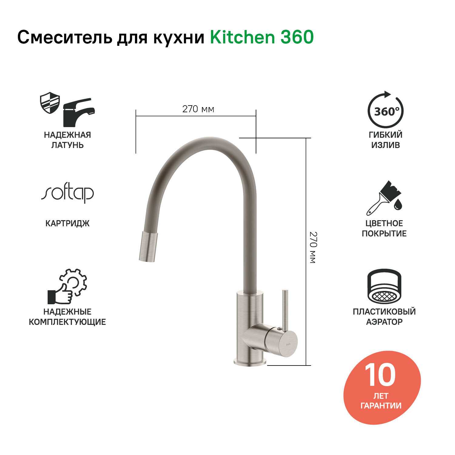 Искали смеситель на кухню на замену старому, который стал подтекать. У всех в семье были разные требования к габаритам излива. Данная модель подошла идеально, кому как надо, тот так и делает. Надеюсь излив выдержит.