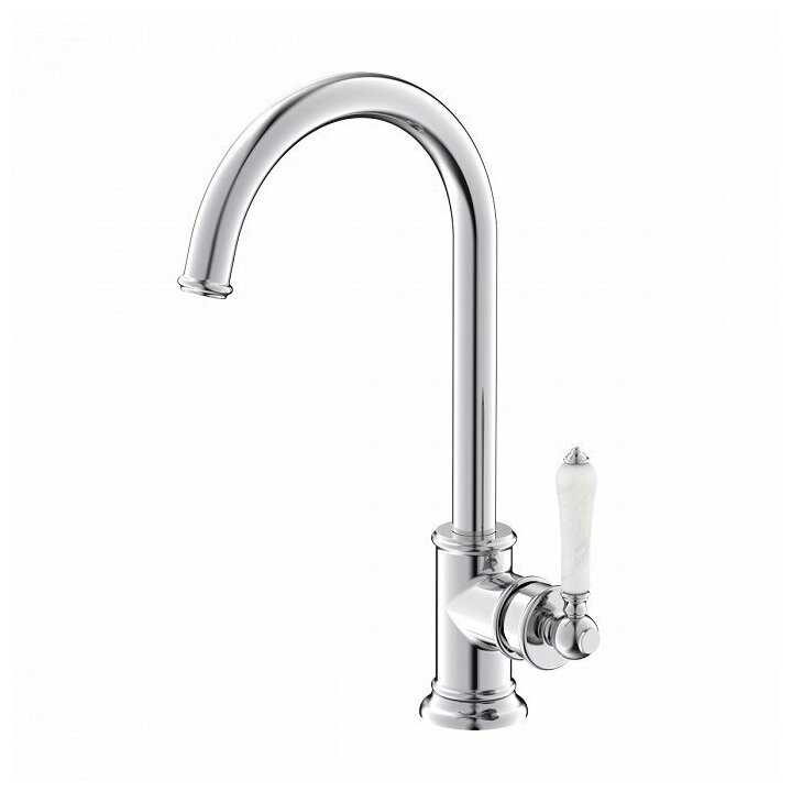 Надежный компактный смеситель в уникальном ретро-стиле. Очень нравиться, что напор и температура воды регулируется одновременно и всего одним поворотом ручки. Этот смеситель изготовлен из латуни, покрыт хромом, благодаря которому имеет привлекательный вид и блеск. Ухаживать заменим просто. Достаточно протереть мягкой салфеткой. Высокий излив удобен тем, что можно наполнять кастрюли и сотейники с высоким бортиком. Струя из крана ровная, никуда не разбрызгивается.