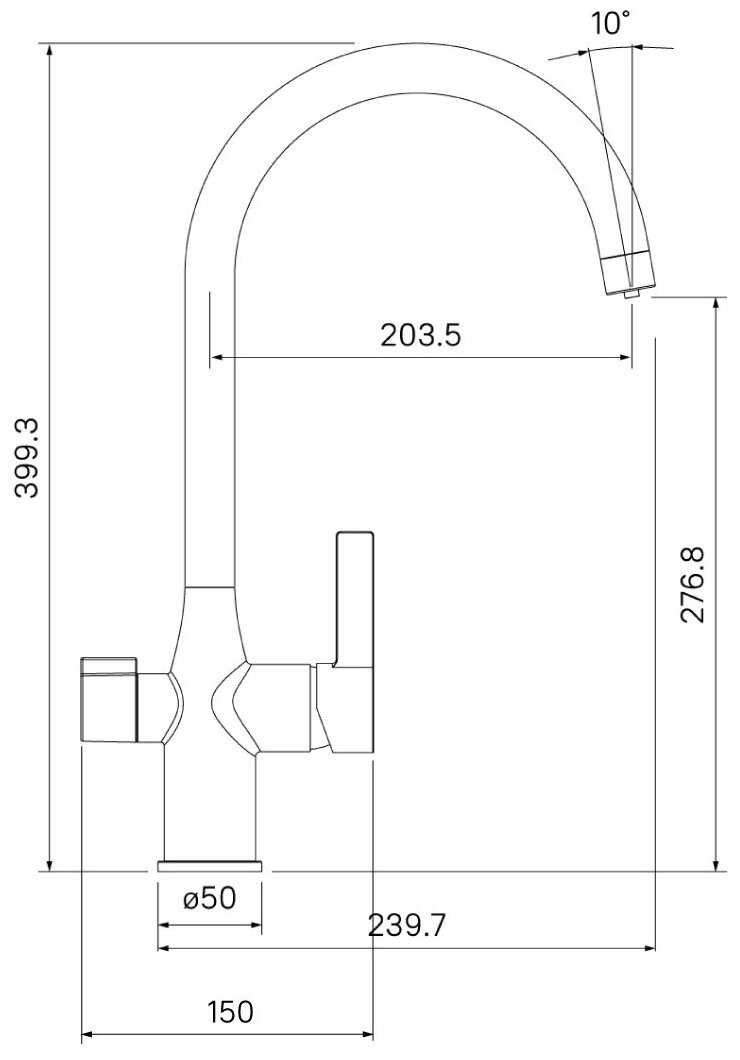 Толщина столншницы, обратите на данный размер внимание. Смеситель не предусмотрен для установки на столешницу толщиной 40 мм
