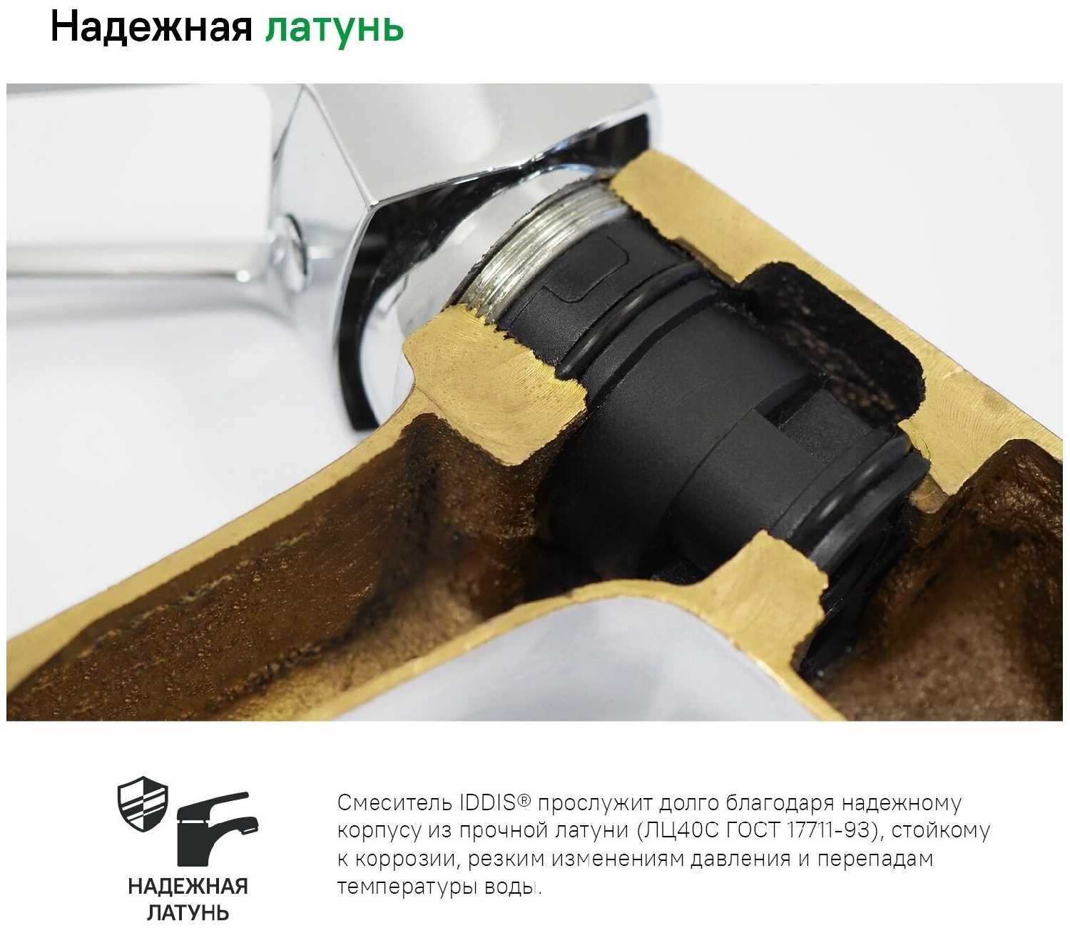 После того, как начал течь картридж смесителя известного японского производителя и полного отсутствия импортных запчастей к нему, выбрал этот. Заодно и со встроенной подачей питьевой воды. Уже не первый смеситель iddis за пять лет, устанавливали в ванной, на раковину, гигиенический душ, себе и близким на квартиру. Материал латунь, покрытие цвета «сатин» подходит для искуственного камня и накипь не видно. Рычаги двигаются умеренно туго, без люфта. Наличие гарантии радует, проверено на другой сантехнике.