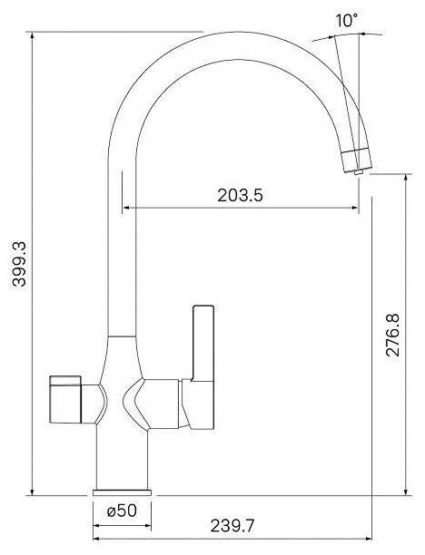 - + Хороший по качеству смеситель. Раздельные каналы для общей воды и фильтрованной