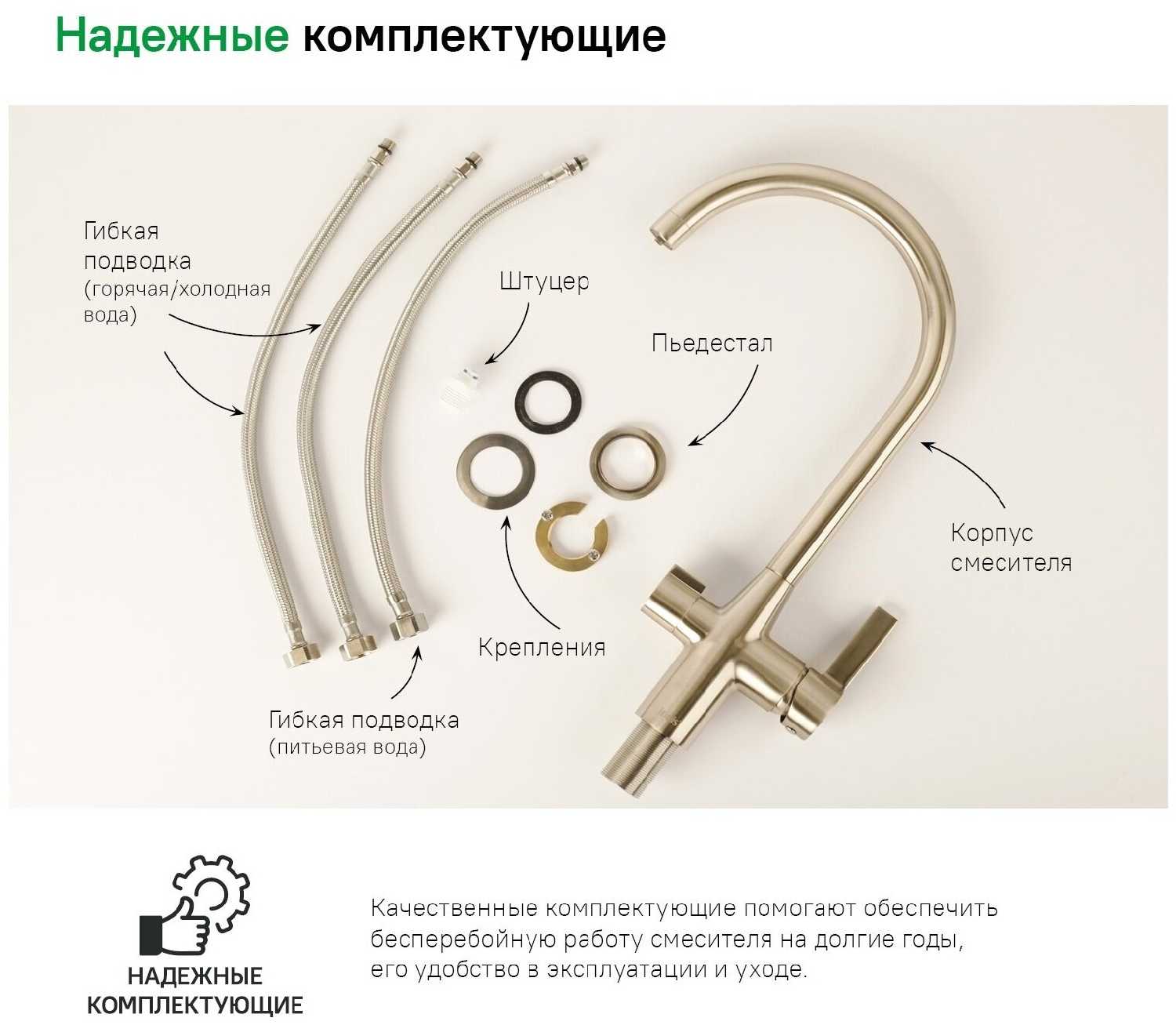 - + Кран сразу с отверстием для фильтрованной воды .