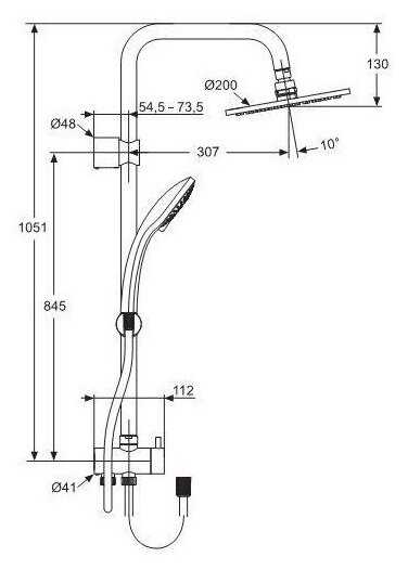 | Высота стойки для душа : | 1051 мм |