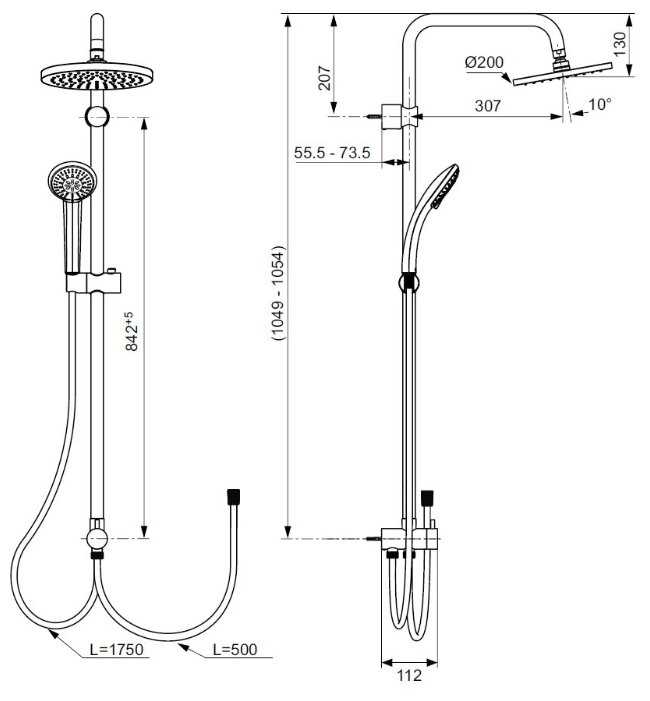 | Высота стойки для душа : | 1054 мм |