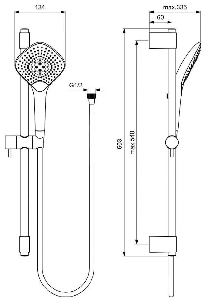 Комплектация : | держатель лейки, душевая стойка, душевая штанга, лейка, шланг |