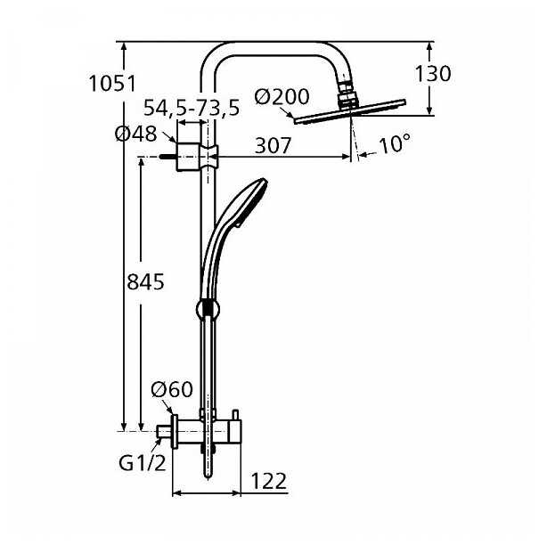 | Комплектация : | вентиль, верхний душ, держатель лейки, душевая стойка, душевая штанга, лейка, переключатель потоков, подводка гибкая, ручной душ |