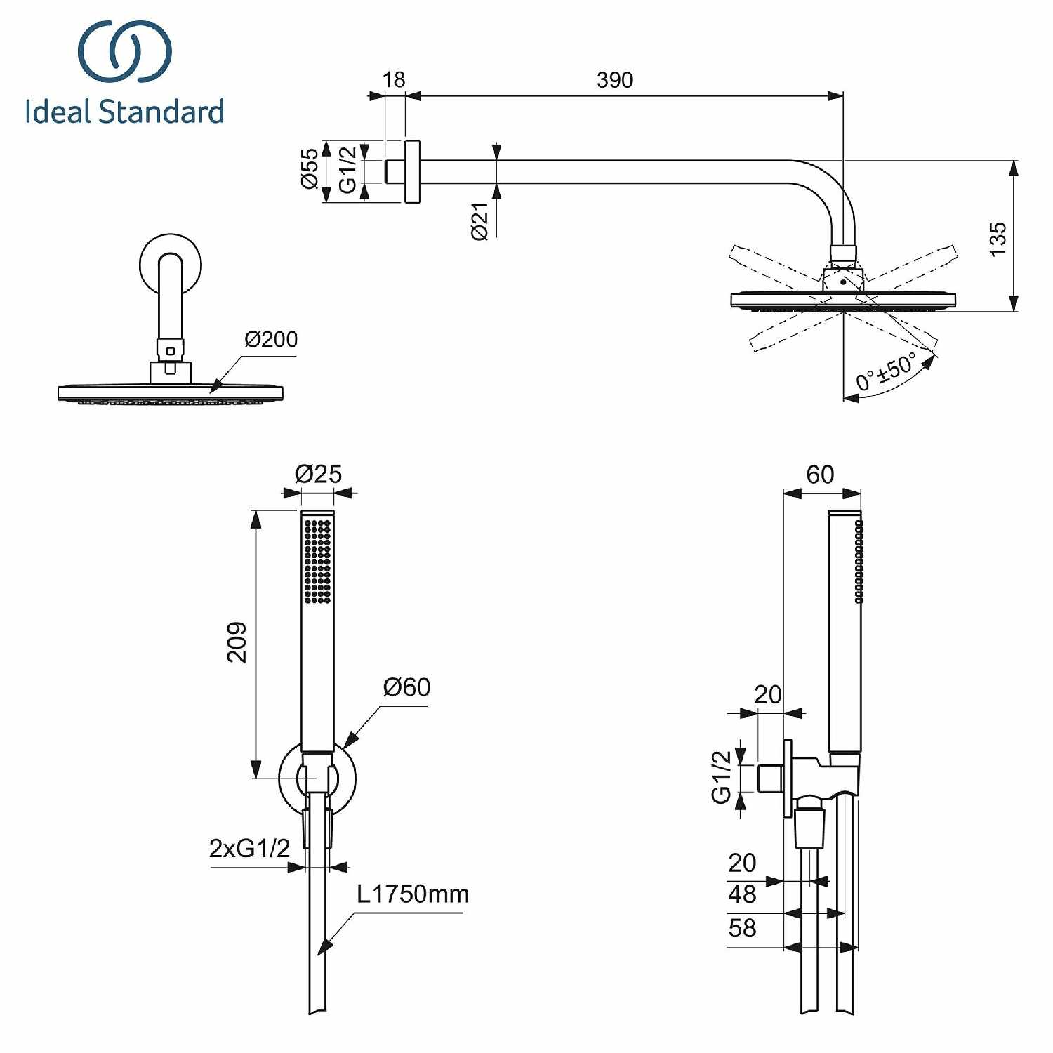 Характеристи Ideal STANDARD Комплект для душа 2 в 1 (LG7238AA)