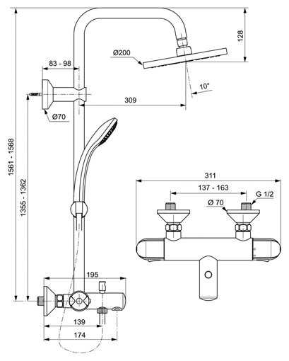 | Высота стойки для душа : | 1568 мм |