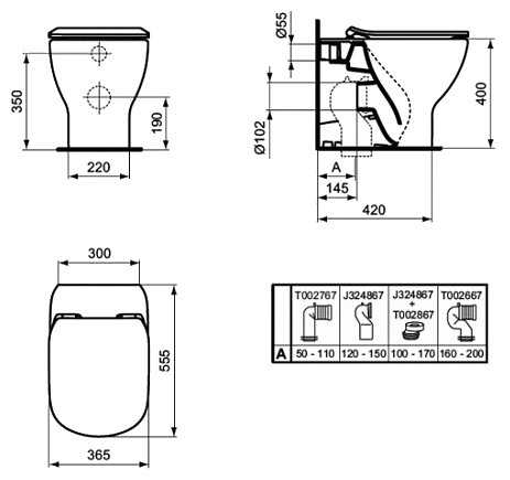 Характеристи Ideal STANDARD Tesi AquaBlade T007701 с горизонтальным выпуском