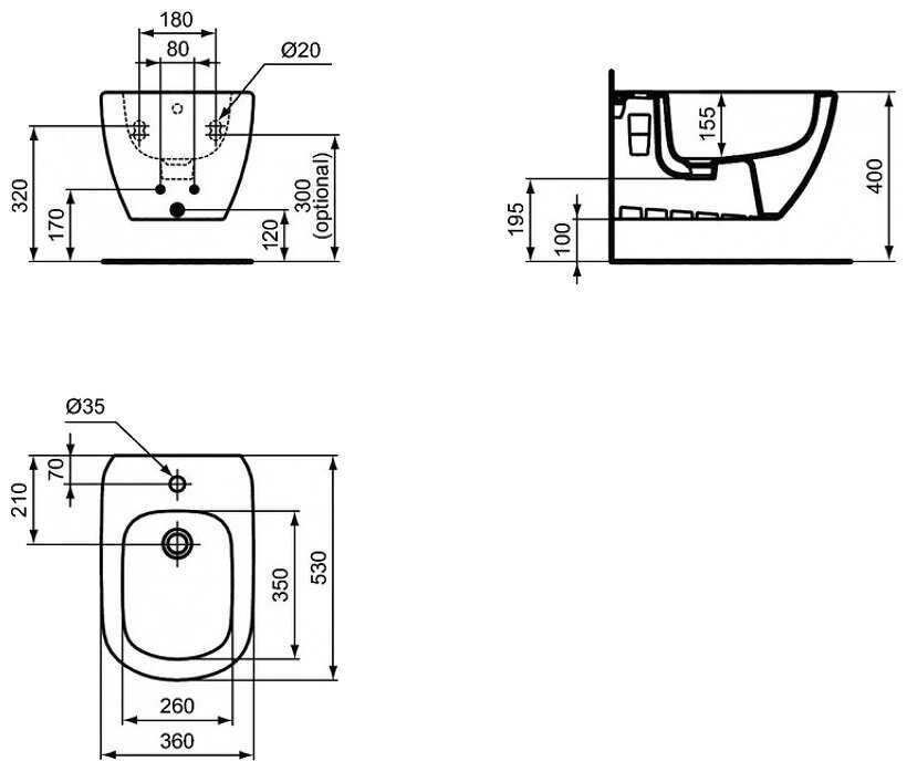 Характеристи Ideal STANDARD Tesi T3552V1 с горизонтальным выпуском