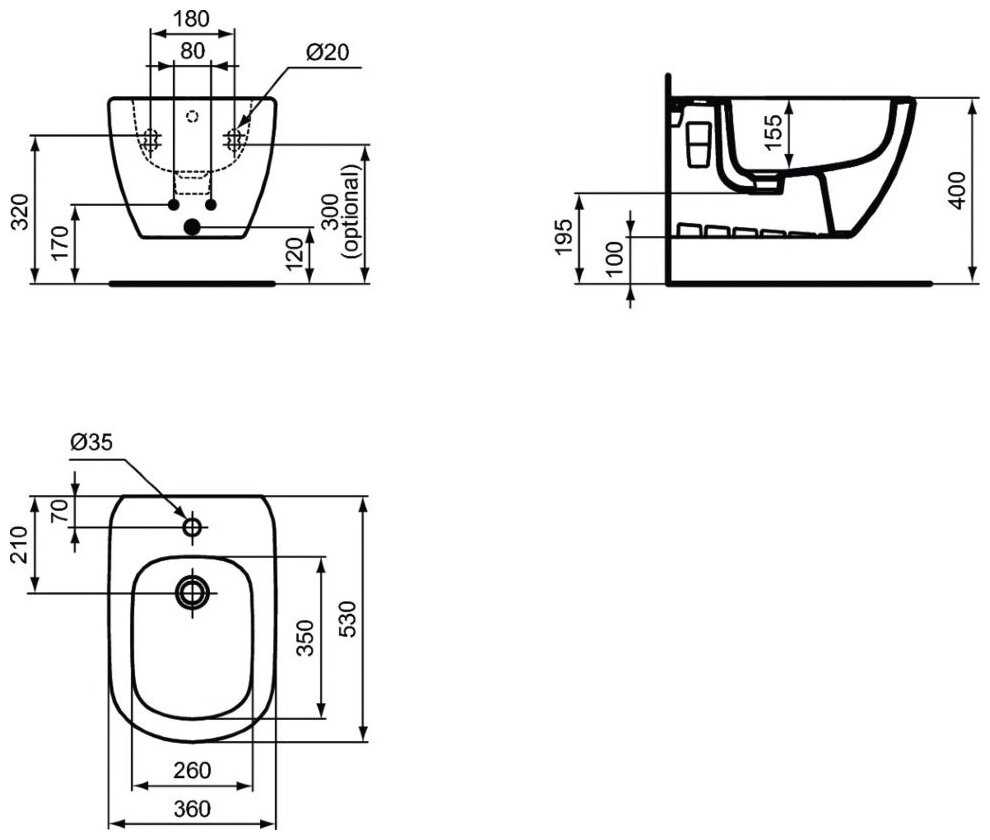 | Дополнительная информация : | TESI Подвесное биде, с отверстием под смеситель, с отверстием перелива, с крепежом TT0299598 (для полностью скрытого монтажа) |