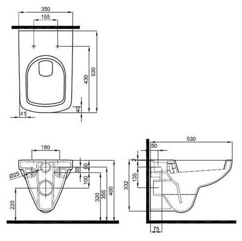 - + Современный дизайн, плавное опускание крышки и сиденья, мощность смыва.