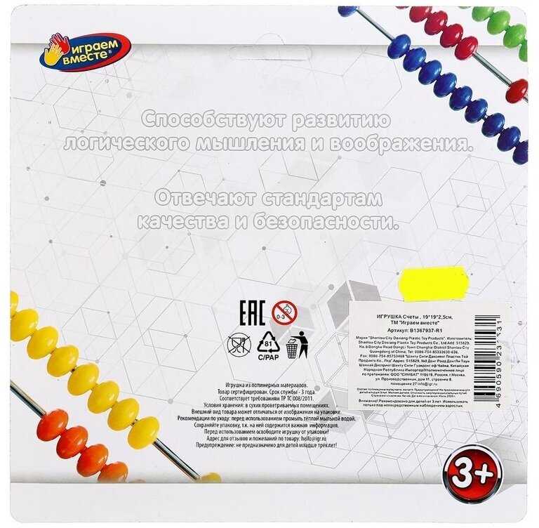 Развивающие функции : | логика и мышление, моторика и ловкость, счет и математика |